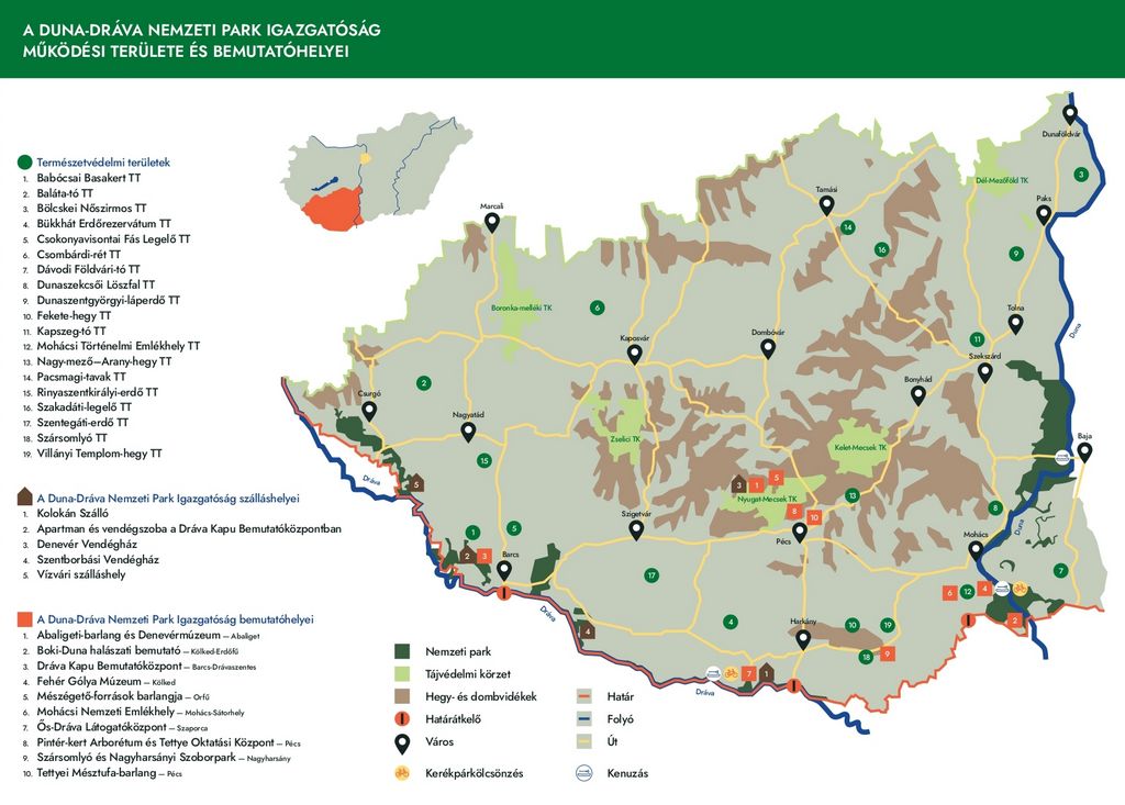2. térkép: A Duna-Dráva Nemzeti Park Igazgatóság működési területe és bemutatóhelyei