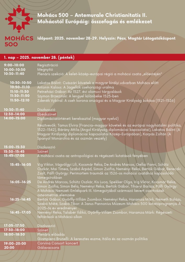500 évvel Mohács után – együtt gondolkodunk Európa múltjáról és közös örökségéről. A Mohács 500 – Antemurale Christianitatis II. konferencia Pécsen gyűjti össze a térség kutatóit és kulturális szereplőit, hogy közösen keressük: mit jelent ma a mohácsi emlékezet?